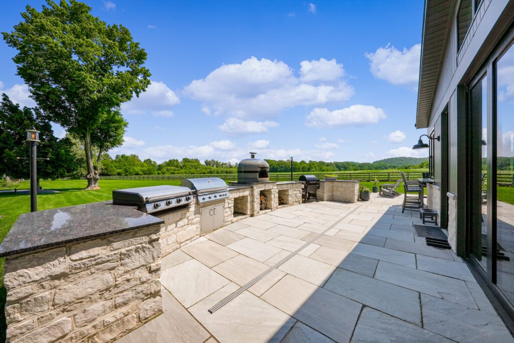 Outside, the space is designed for serious grill enthusiasts. Whether it’s breakfast on the Blackstone, dinner on the gas grill, low-and-slow cooking on the Traeger smoker, or wood-fired pizza from the 700+ lb pizza oven, this backyard has it all. The generous hardscape patio provides ample room for hosting, while a built-in, in-ground hot tub offers the perfect place to unwind and enjoy the serenity of the property.